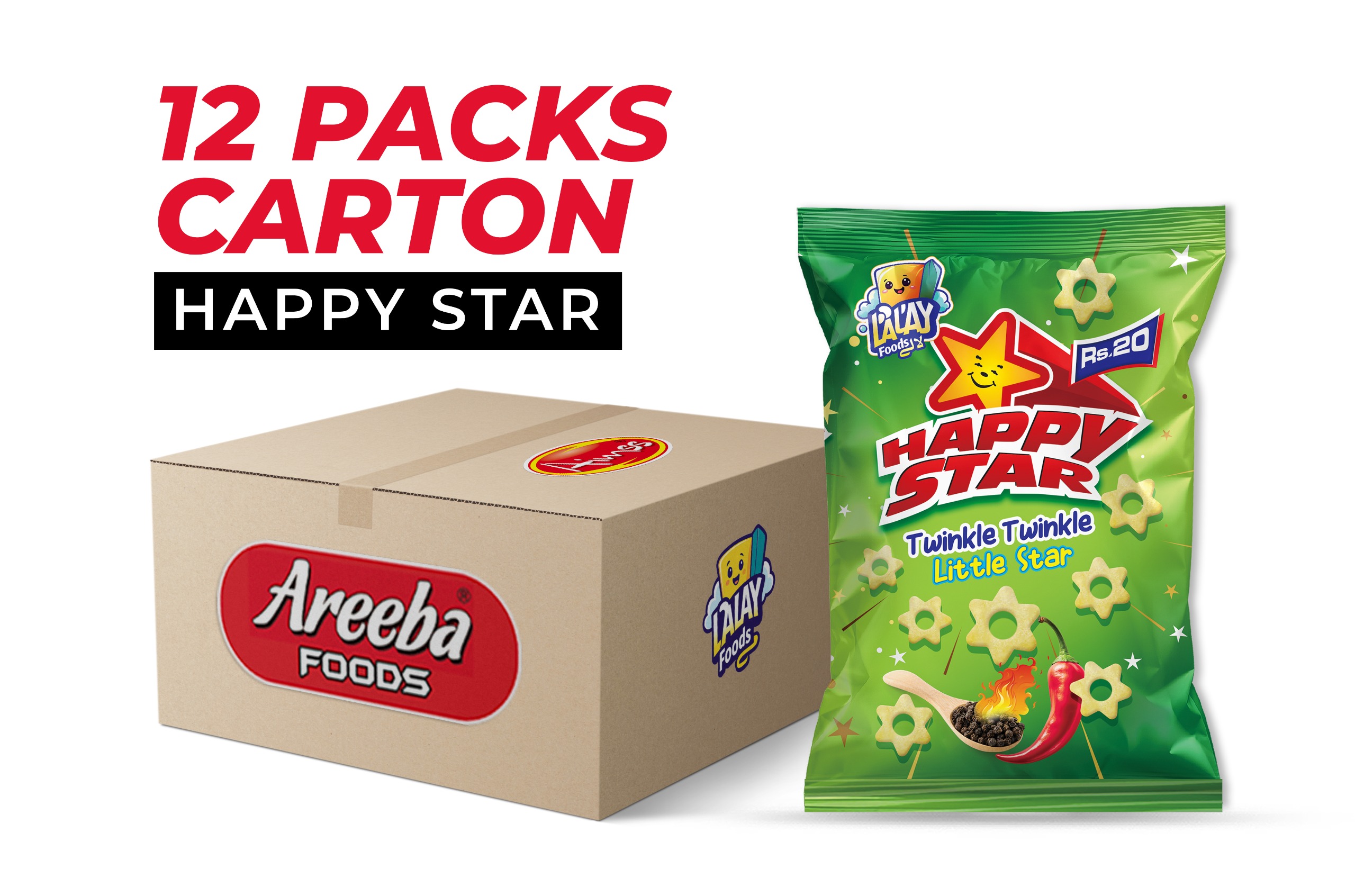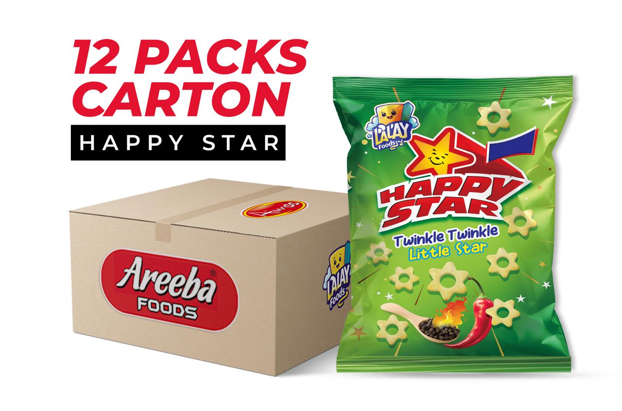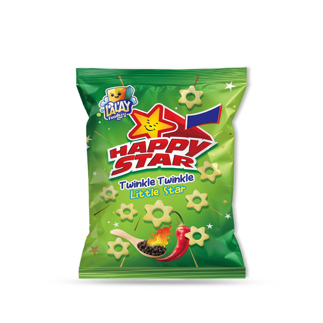Happy Star – Twinkle Twinkle Little Star is a fun and flavorful snack specially loved by kids. Made with crispy corn and seasoned with a light yet spicy masala, each star-shaped bite delivers crunch, taste, and excitement.